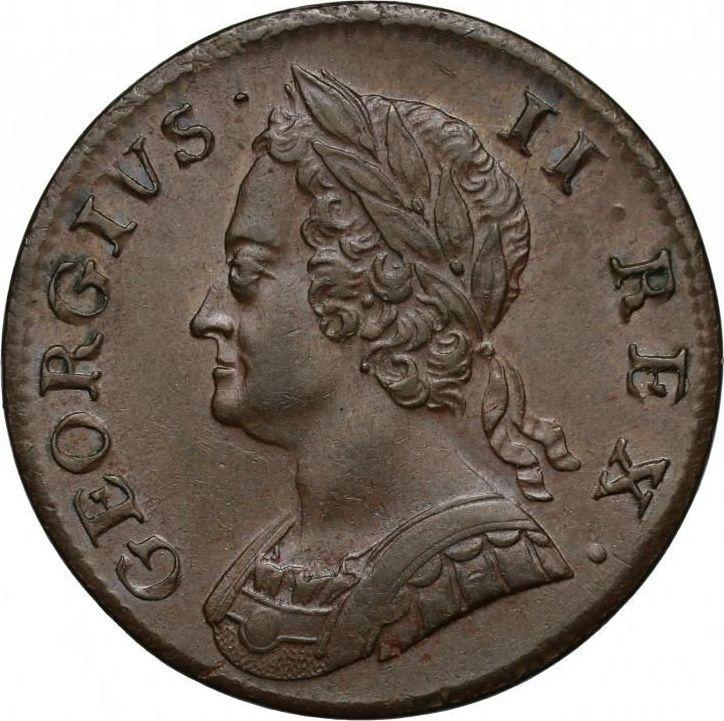 Сколько стоит медная монета Георга II 1/2 пенни 1751 года "Портрет в старости"?