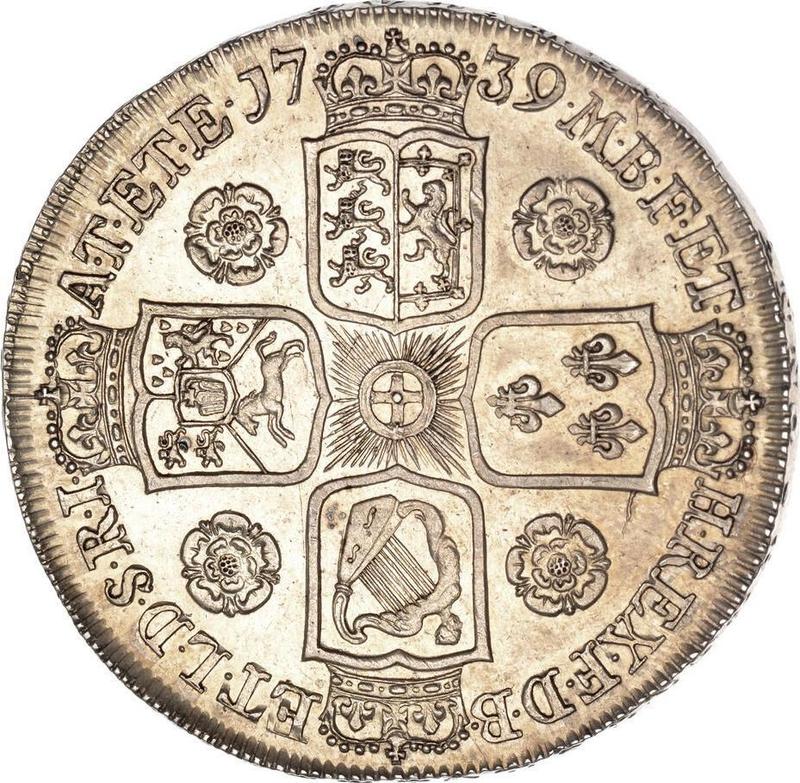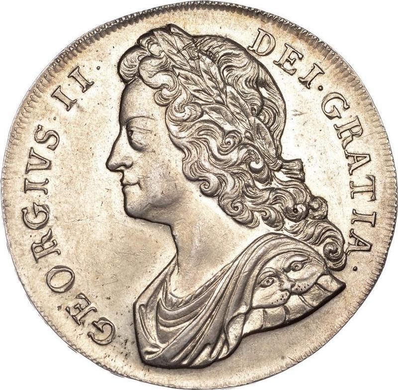 Сколько стоит серебряная монета Георга II 1 крона 1739 года "Портрет в молодом возрасте"?