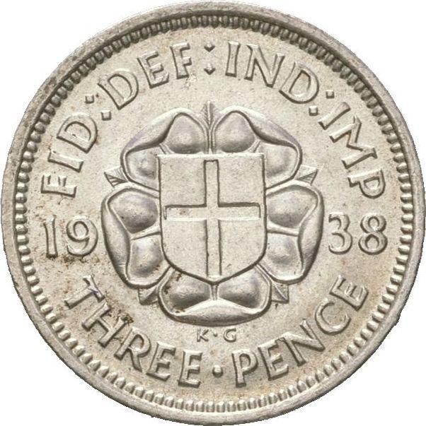 3 пенса 1938 года HP "Тип 1937-1945" (Великобритания, Георг VI)