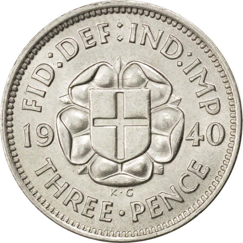 3 пенса 1940 года HP "Тип 1937-1945" (Великобритания, Георг VI)