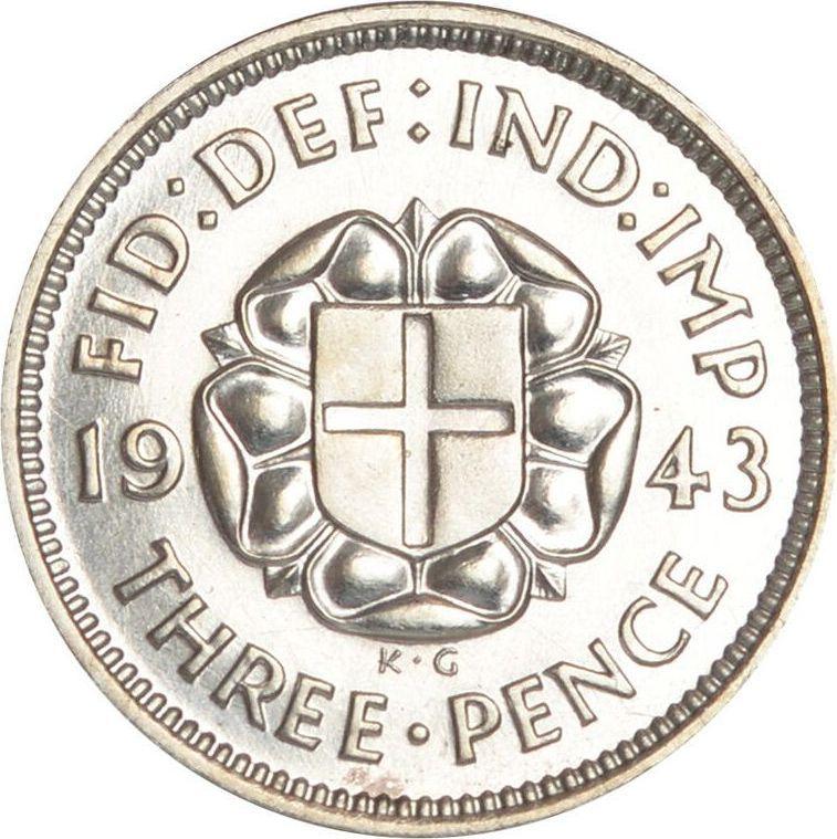 3 пенса 1943 года HP "Тип 1937-1945" (Великобритания, Георг VI)