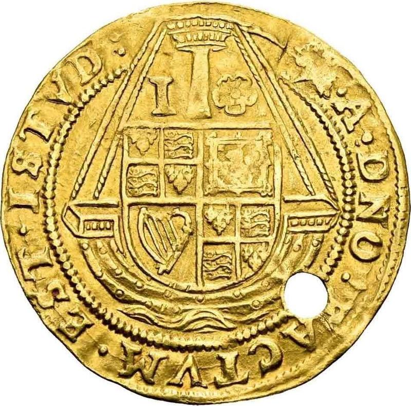 Сколько стоит золотая монета Якова I энджел без года (1604-1619) "Второй выпуск", разновидность - отверстие?