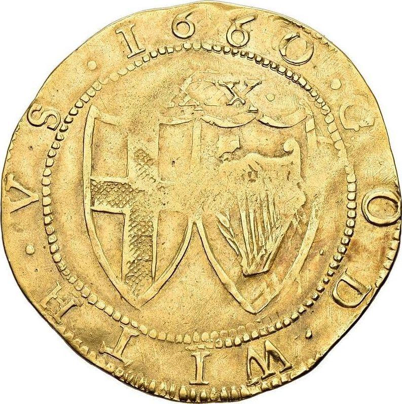 Сколько стоит золотая монета Содружества юнайт 1660 года?