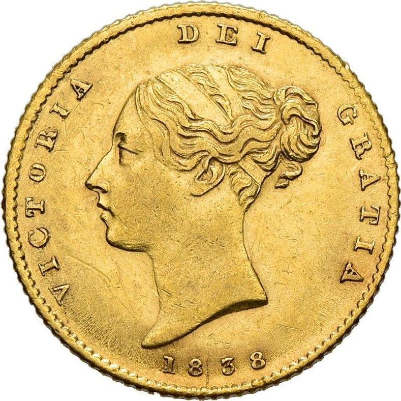 Сколько стоит золотая монета Виктории 1/2 соверена 1838 года?