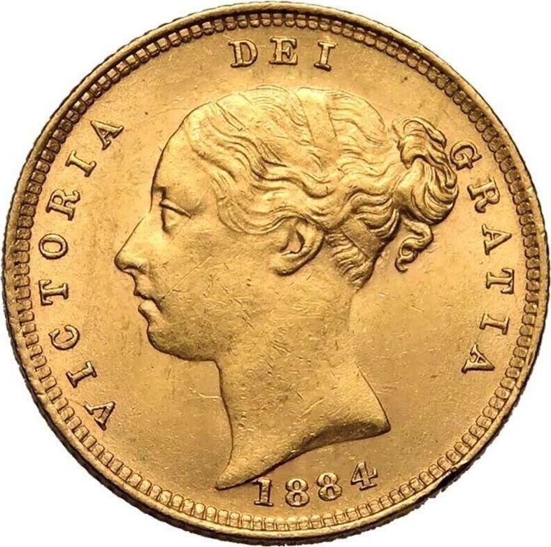 Сколько стоит золотая монета Виктории 1/2 соверена 1884 года?