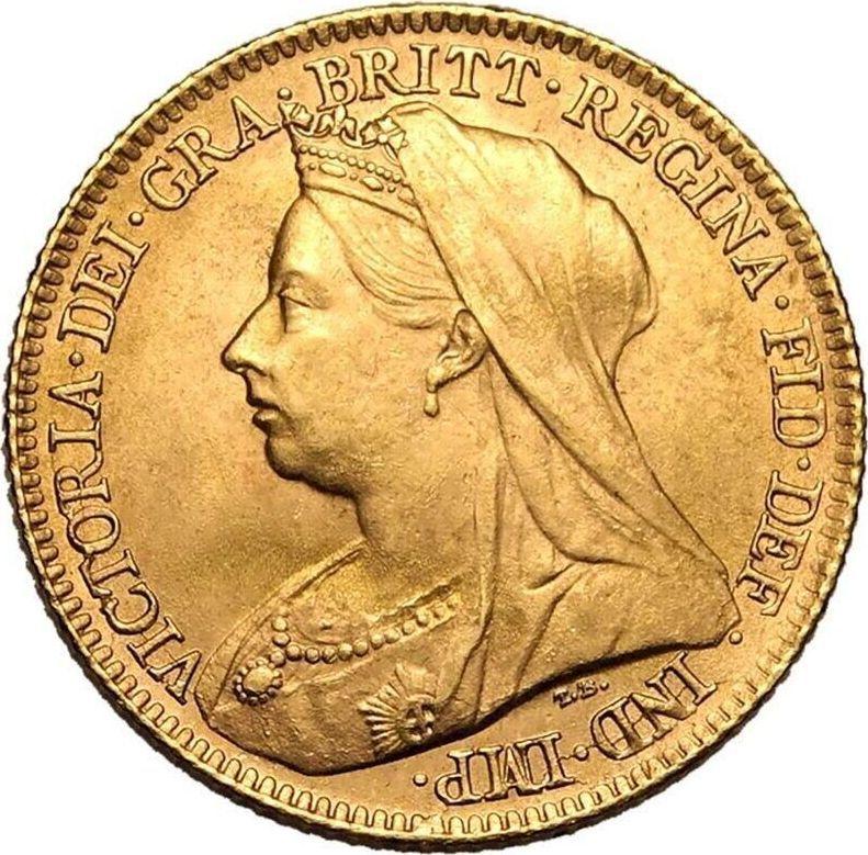 Сколько стоит золотая монета Виктории 1/2 соверена 1897 года TB "Св. Георгий"?