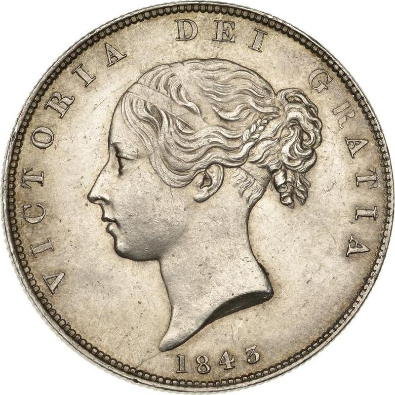 1/2 кроны (Полукрона) 1843 года (Великобритания, Виктория)