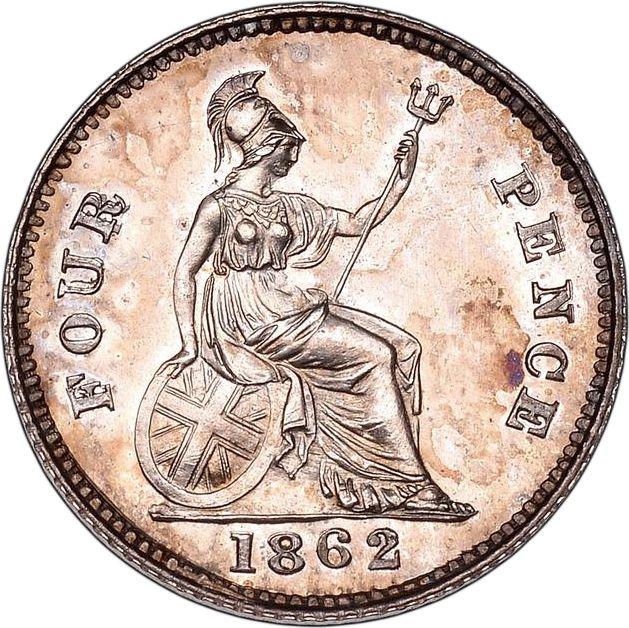 4 пенса (1 Грот) 1862 года "Тип 1837-1862" (Великобритания, Виктория)