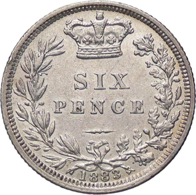 По последним данным на 7 декабря 2025 средняя стоимость серебряной монеты 6 пенсов 1883 года составляет 190 USD для регулярного чекана и 8100 USD для монет отчеканенных по технологии PROOF.