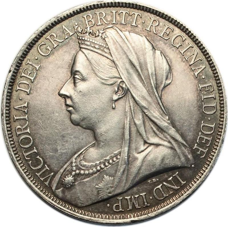 Сколько стоит серебряная монета Виктории 1 крона 1893 года TB, разновидность - гурт "LVI"?