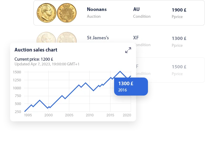 We monitor price changes on the numismatic market daily. 24/7 we collect information about the prices of coins sold at more than 300 auctions around the world. Statistics on sales prices in some cases cover the 1980th, the data accumulated over decades make it possible not only to evaluate rare coins, but also to identify trends and fluctuations in the value of a particular coin. We recommend using our online coin appraisal service before selling or buying another coin. Many dealers offer coin valuation upon purchase, but sometimes they are interested in too low a price because they are the buyer. Coinstrail.com does not buy coins - therefore, our opinion does not depend on anything other than the price statistics of old coins at well-known auctions in Poland, Germany and many other countries.